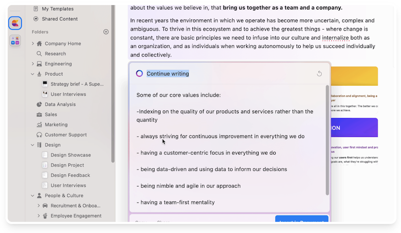 会社のお知らせを書くのに苦労していますか? CraftのAIアシスタントを使えば、続きの部分をどのように書けばいいかアイデアを得ることができます。