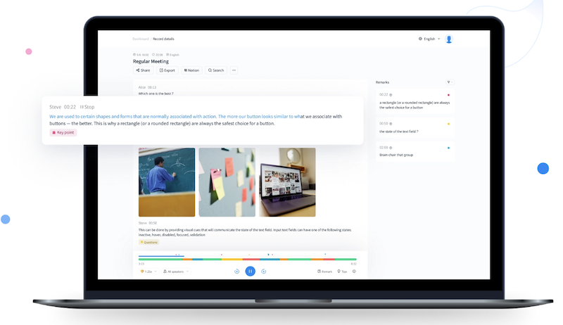 会議の書き起こしは検索機能で簡単に確認でき、音声を作成して同僚と共有することも可能。 このAIノートアプリは、あなたのチームとの共同作業の方法を変え、ノート作成を可能な限りシームレスにします。