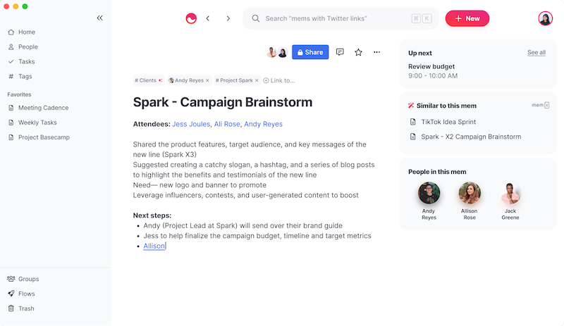 Mem makes capturing and organizing your notes, calendar events, and emails more accessible with AI.