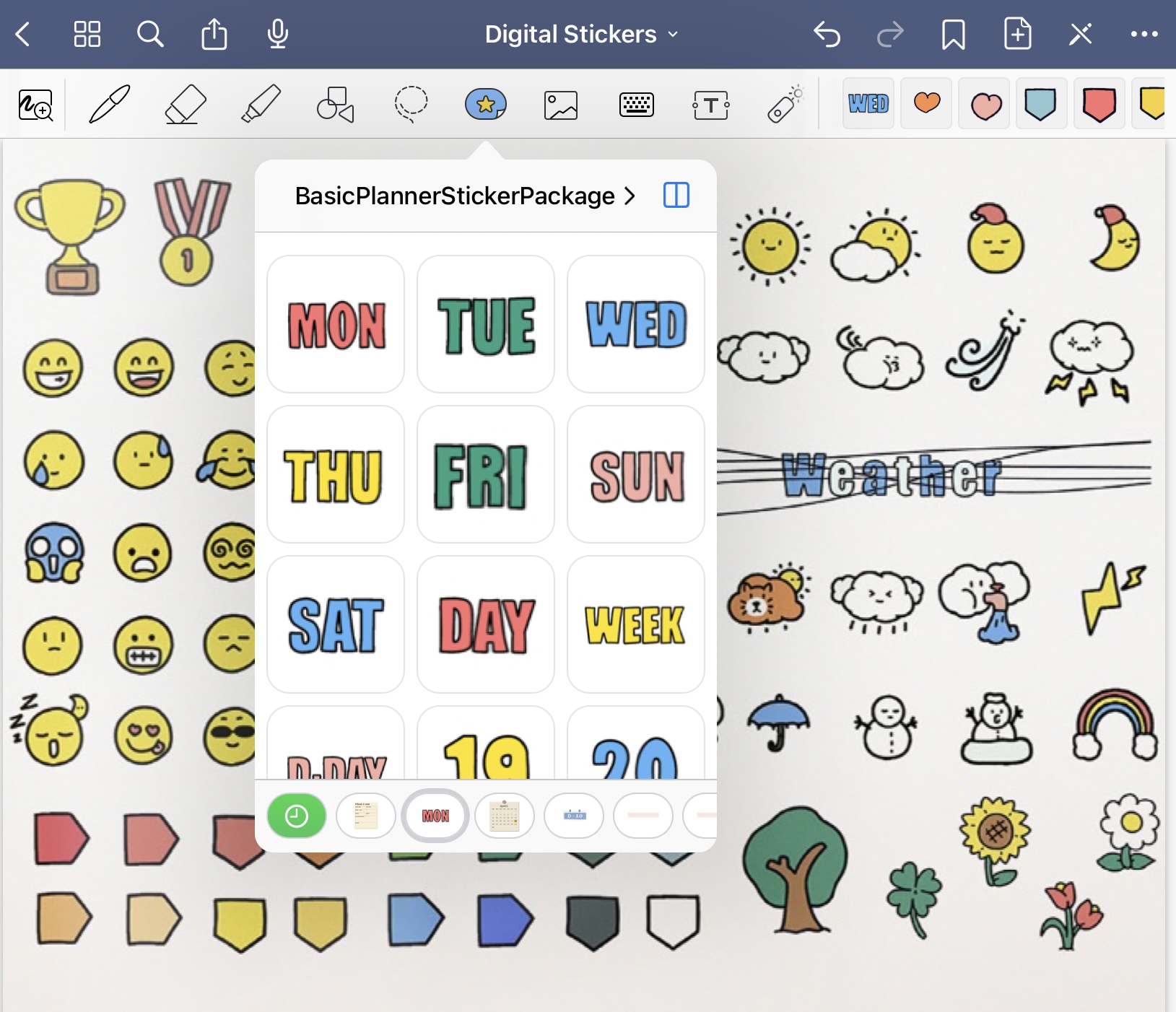 Goodnotes 사용자라면 이러한 스티커들이 이미 .goodnotes 파일로 제공되기 때문에 Goodnotes로 바로 가지고 와 요소로 추가할 수 있습니다.