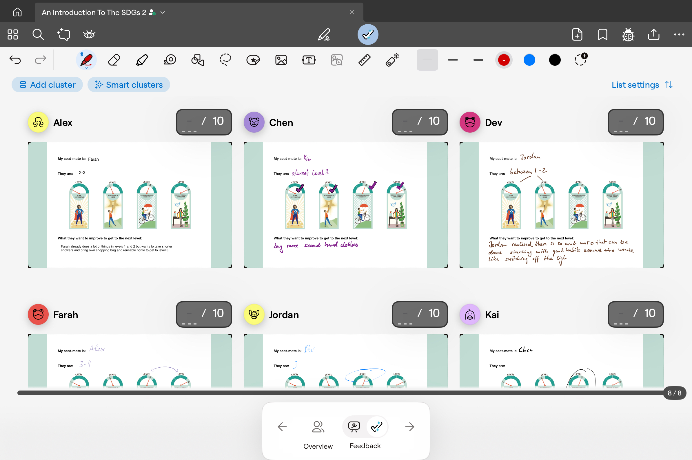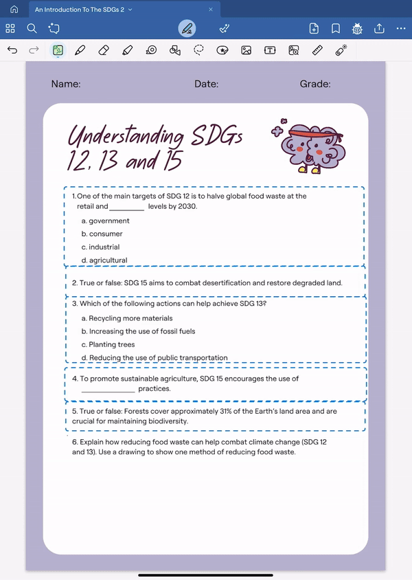 - Start off with a quick direct instruction where you provide an overview of the SDGs on a page and use the digital whiteboard in Goodnotes Classroom to add annotations on top of the page. Your students can add their own notes on the page