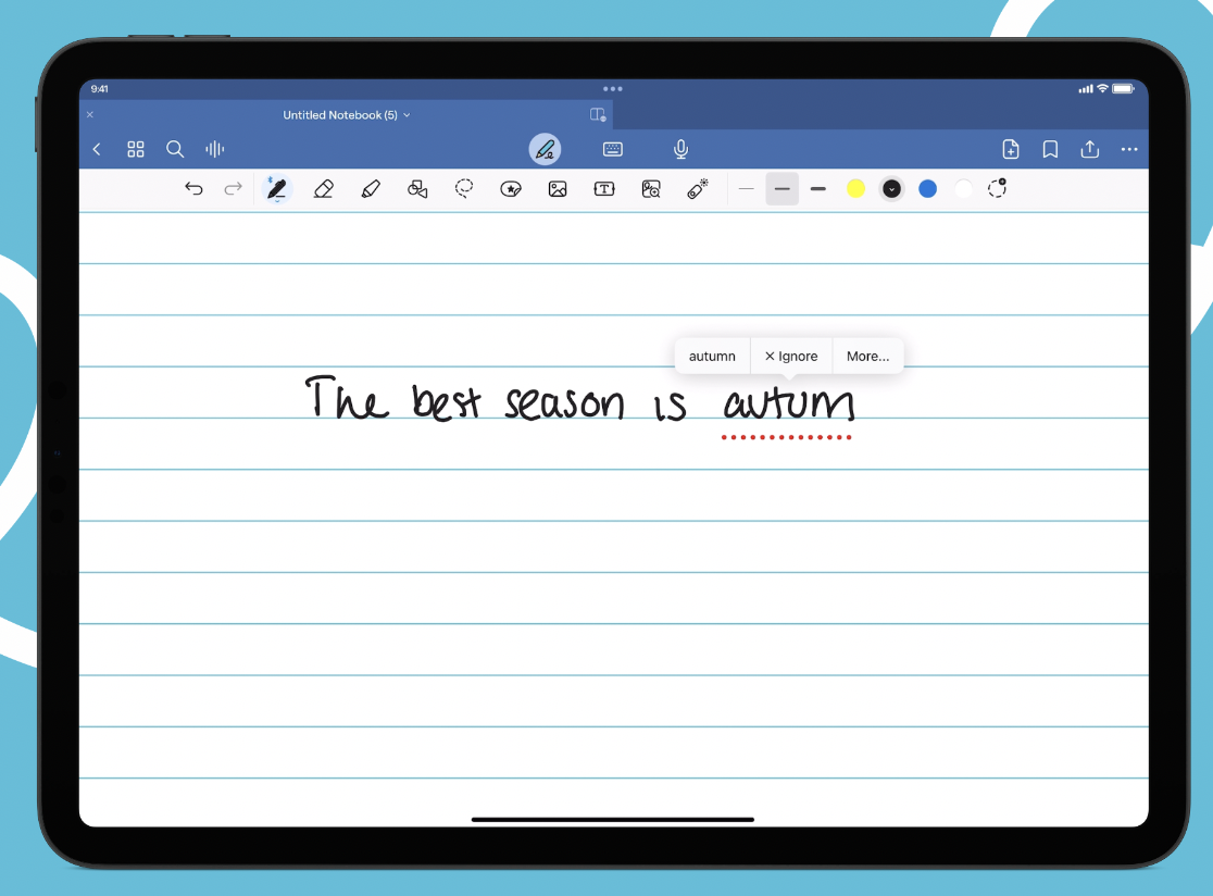 - 철자 검사. 이제 오타없이 필기하고, 손글씨로 쓴 단어가 자동으로 수정되도록 해 보세요.