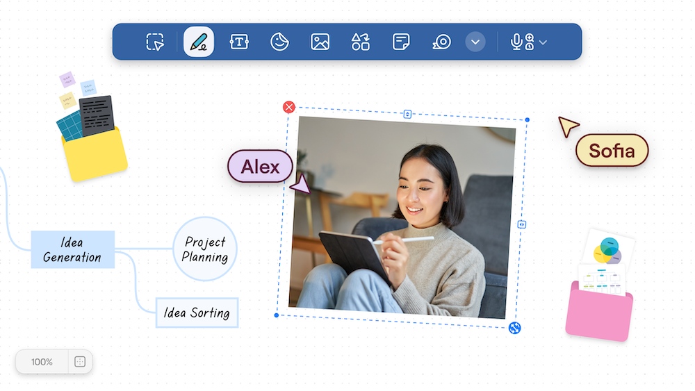 - Shapes tool for polished diagrams, flowcharts, and mindmaps