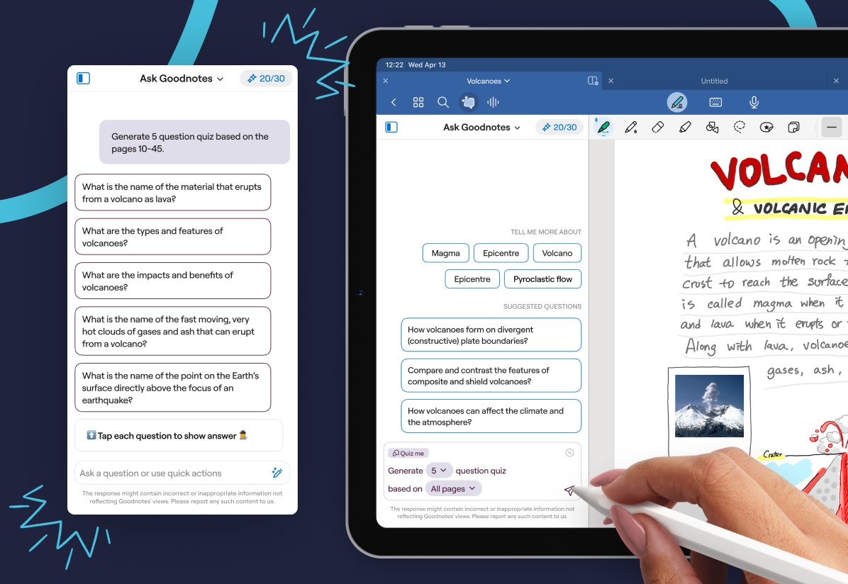 Don’t let information get buried in pages and pages of notes. Make the most of the information you already have in Goodnotes with Ask Goodnotes.