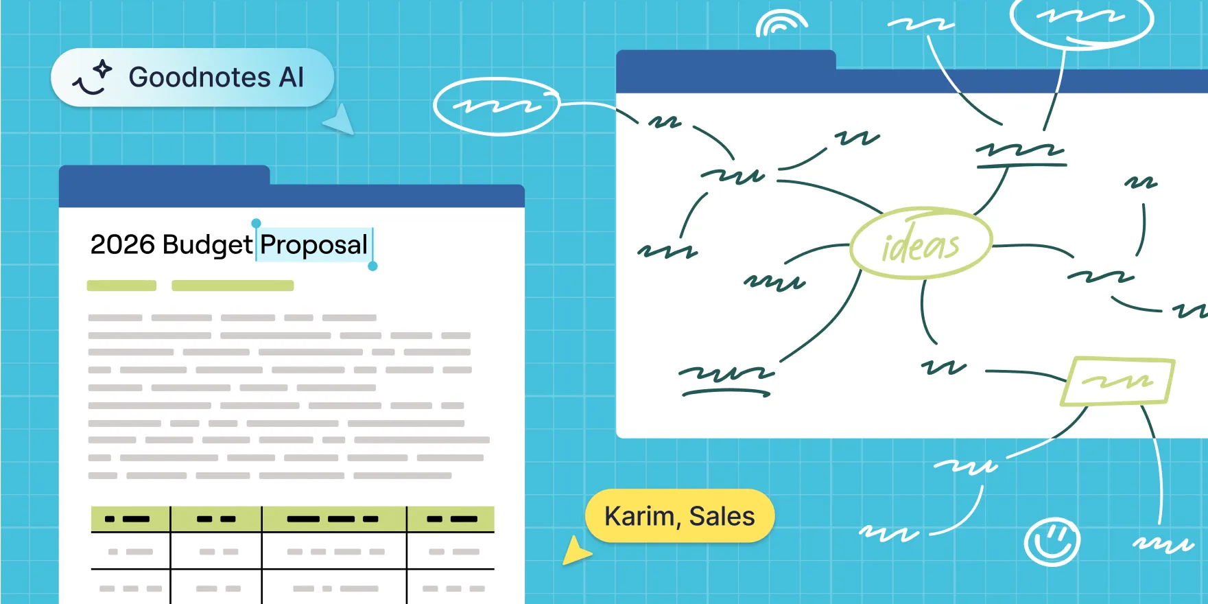 Goodnotes AI becomes your thinking partner, reducing the friction between your ideas and bringing them to life —all while keeping you in the driver's seat. And this is just the beginning.