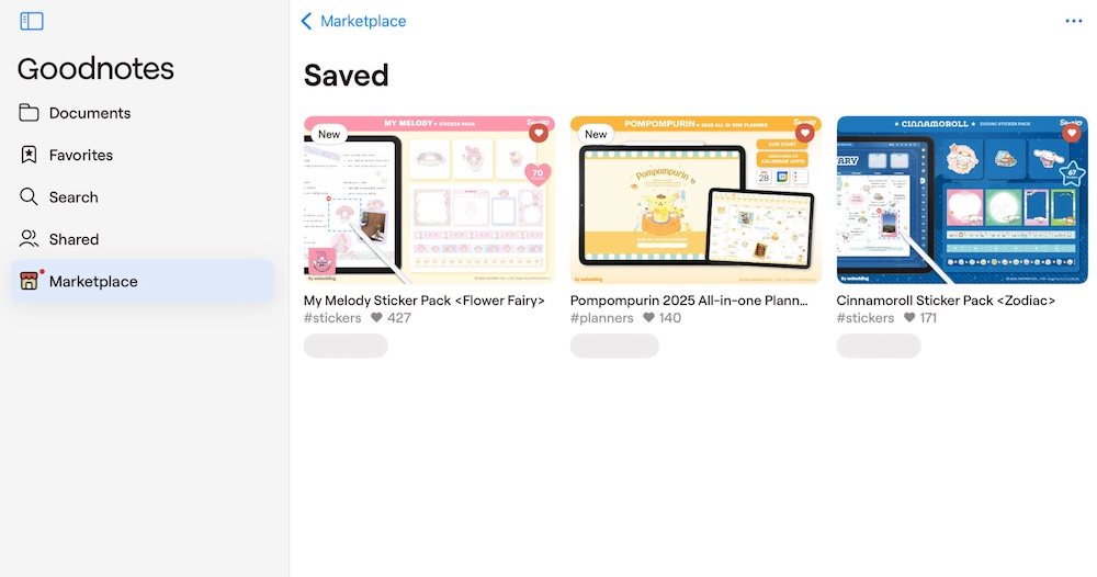 Keep track of your favorite Marketplace finds! With the new saved lists feature, you can bookmark items you love and revisit them later—perfect for when you're browsing for the best templates, covers, or stickers to add to your collection.