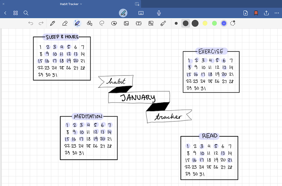 Don’t feel like drawing your own template? You can find several ready-made habit tracker templates to download and use directly.