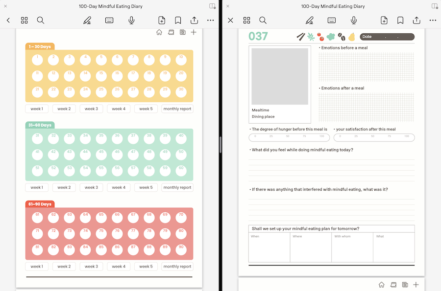 This one is a bit more than just a habit tracker “template”. It’s like a full habit tracking diary, specifically geared towards healthy eating.