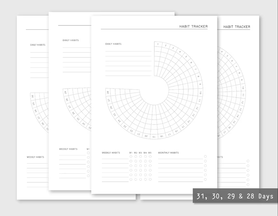 To create this, draw at least 3 layers of circles to create rows for your habits. Then draw grid lines until you have 30 or 31 squares in each row. Number the outside to identify the date, and you’re done!