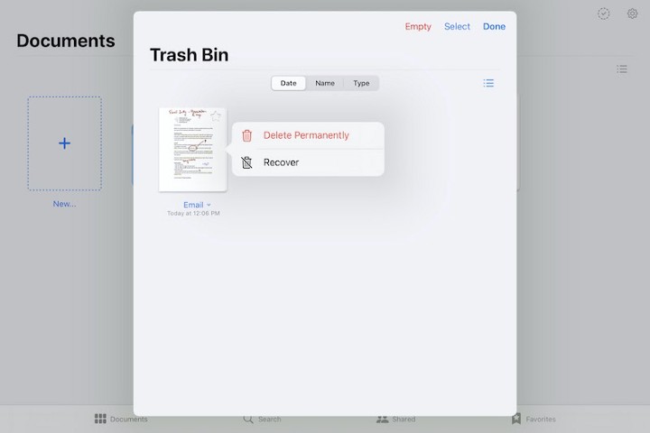 What’s more, Goodnotes won’t automatically empty your Trash Bin, so there’s no window in time that you have to recover a document by.
