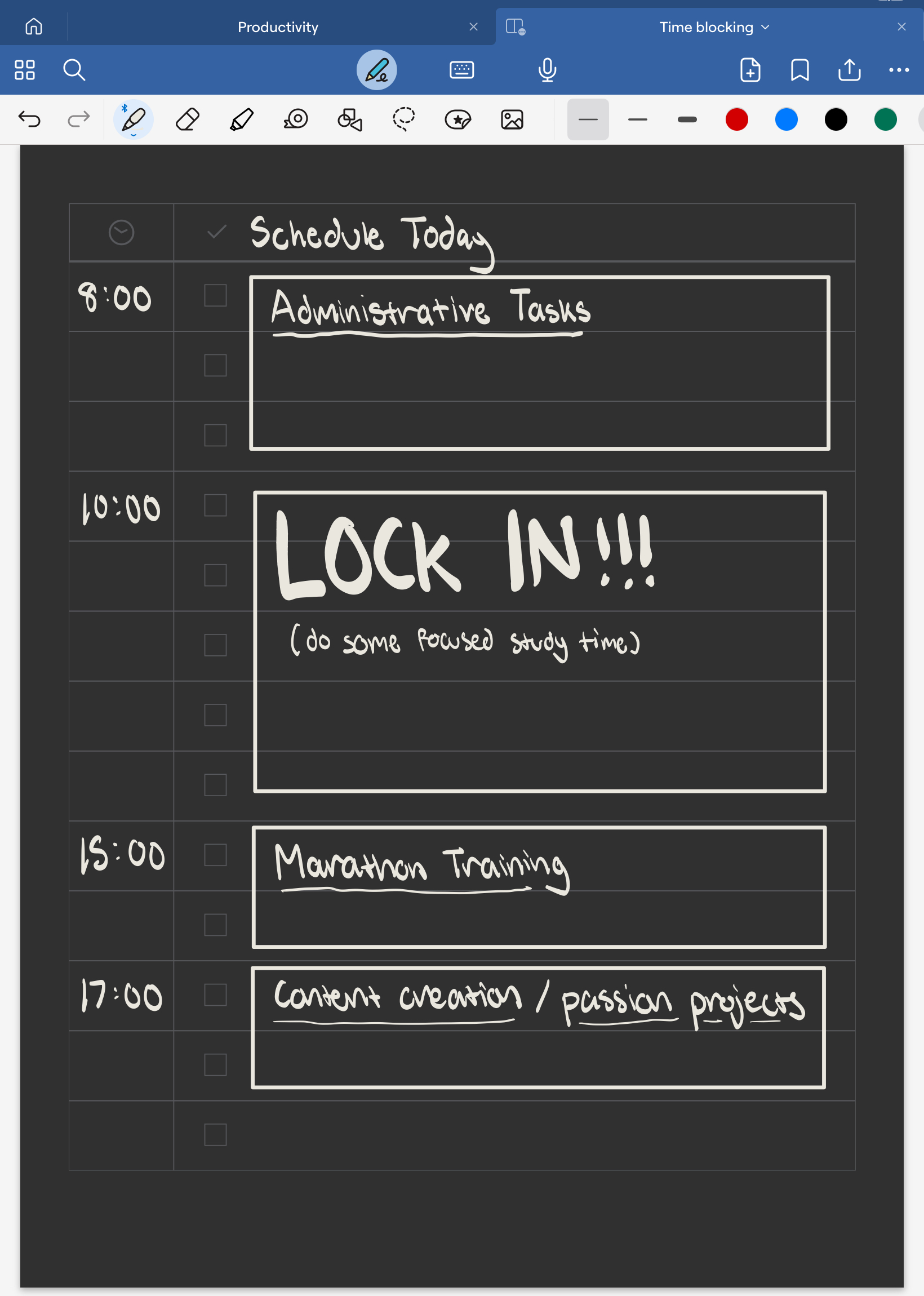 - Schedule your day: Use a digital planner/calendar to organize your time blocks.